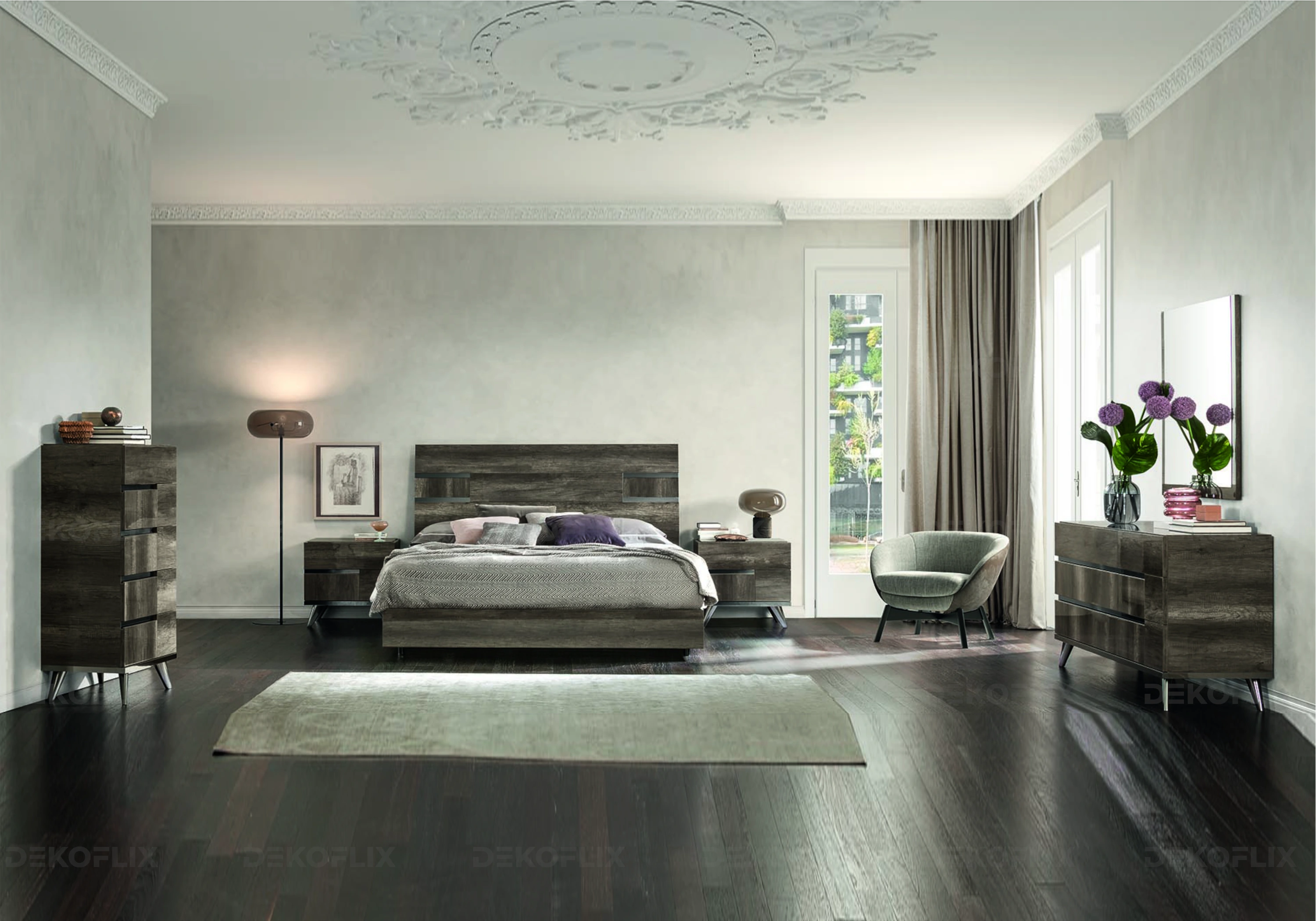 La collection chambre complète bois nostalgique Medea incarne l’essence même du mobilier italien haut de gamme. Inspirée du charme des intérieurs classiques revisités avec une touche contemporaine, elle mêle bois de chêne nostalgique laqué, lignes équilibrées et finition gris soyeux. Chaque pièce allie raffinement esthétique, fonction pratique et fabrication italienne d’exception.
