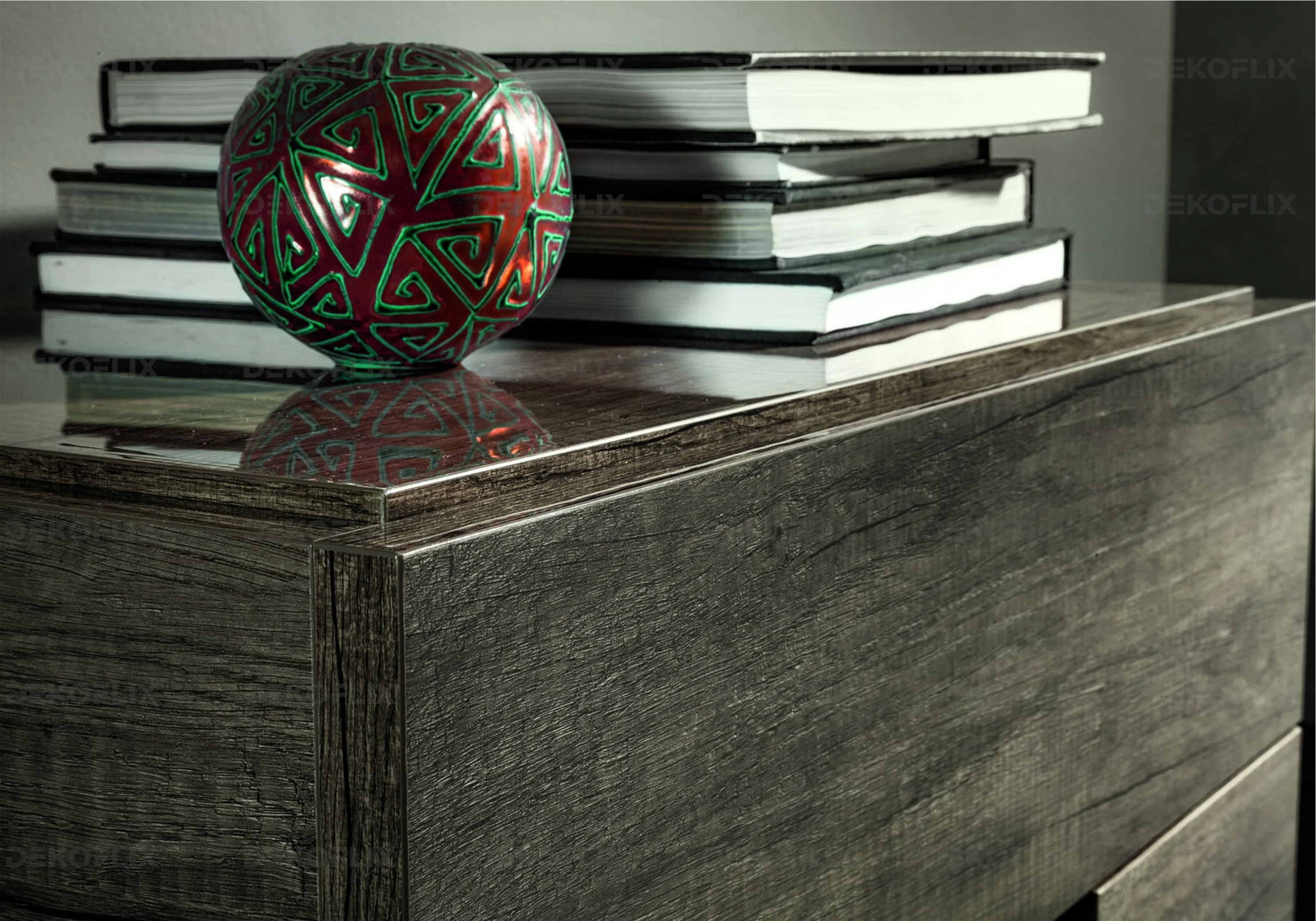 Surface brillante, veinage naturel et structure bois haut de gamme.