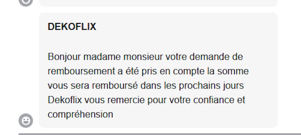 Je veux savoir quand Dekoflix nous remboursera nos chaises ? Nous avons envoyé déjà plusieurs demandes par e-mail sans réponse de votre part. Les chaises commandée le 23/03/2024 !!!!!!