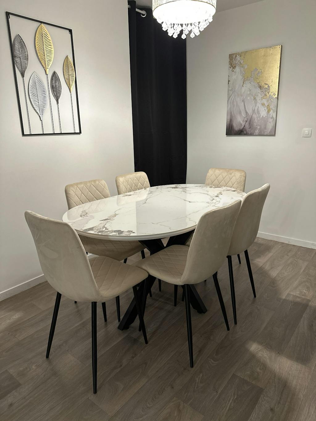 Merci beaucoup pour votre retour si positif ! Nous sommes ravis d’apprendre que votre table à manger en céramique correspond parfaitement à vos attentes. Votre satisfaction est notre priorité, et votre recommandation nous touche énormément.