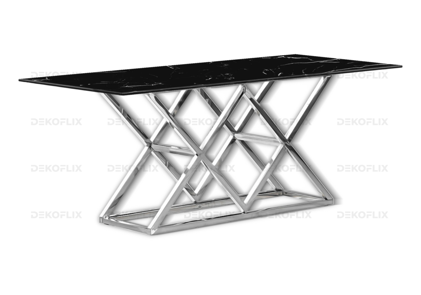 Le verre trempé effet marbre noir se nettoie facilement avec un chiffon doux, tandis que la structure en acier inoxydable chromé conserve son brillant éclat même après des années d’utilisation. Idéal pour ceux qui recherchent un meuble pratique et durable.