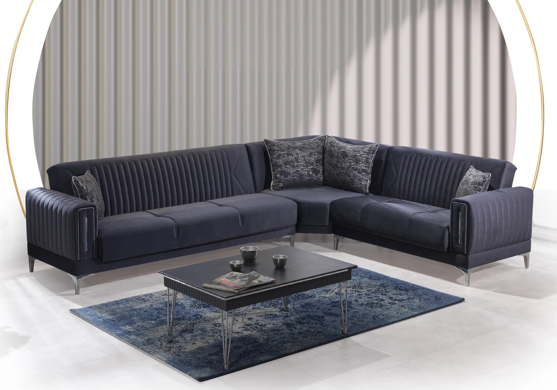 Caractéristiques – Canapé angle convertible velours gris argent – ASYA