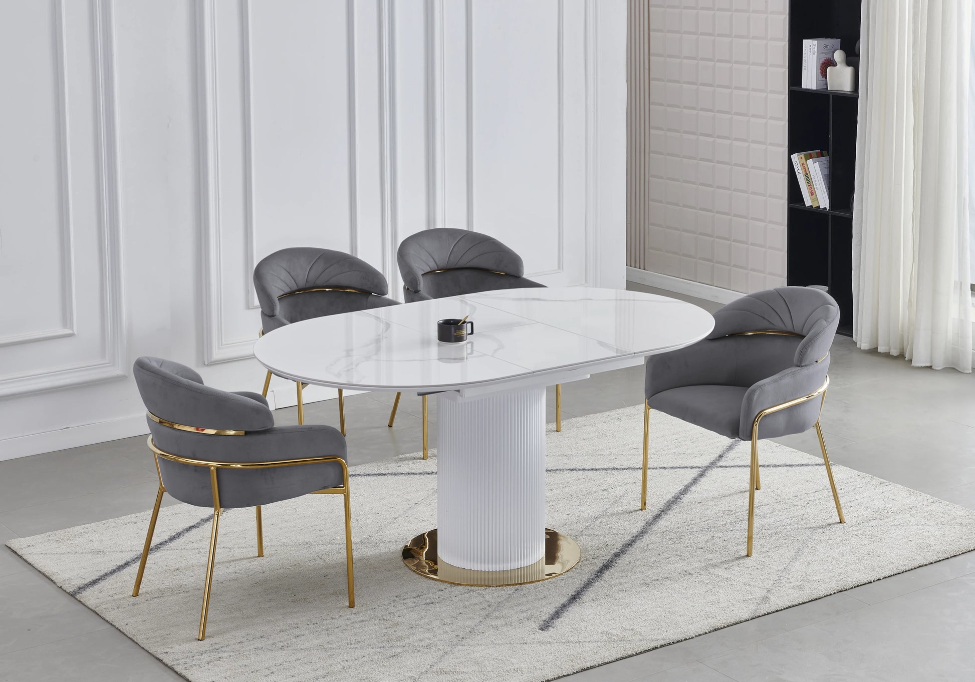 Associée à une table ronde marbre blanc doré – LEON, la NOAM révèle tout son éclat et met en valeur la décoration de votre salle à manger.
