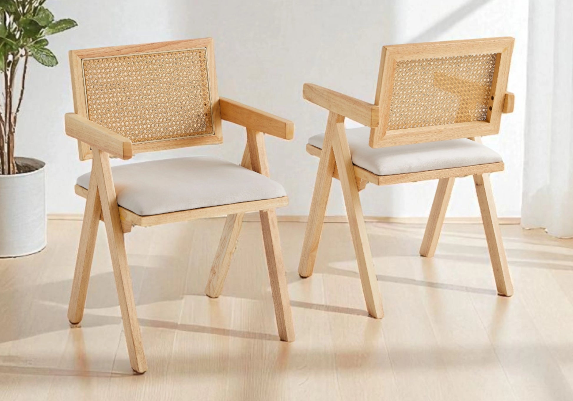 L’assise rembourrée assure un confort immédiat, tandis que le dossier en cannage naturel laisse circuler l’air pour une sensation agréable, même en été. Les accoudoirs apportent stabilité et soutien, rendant la chaise idéale pour les repas de famille ou un usage prolongé.