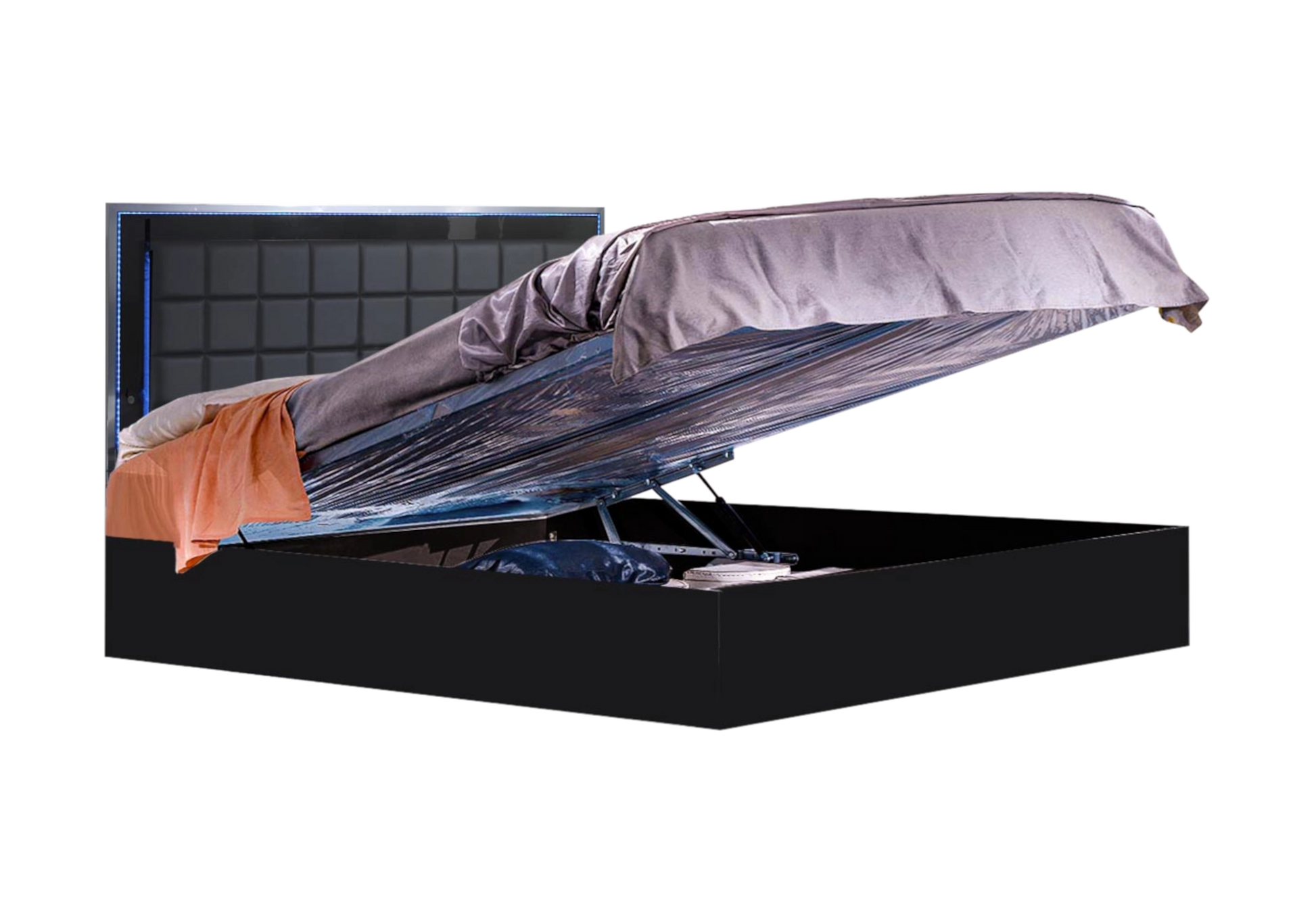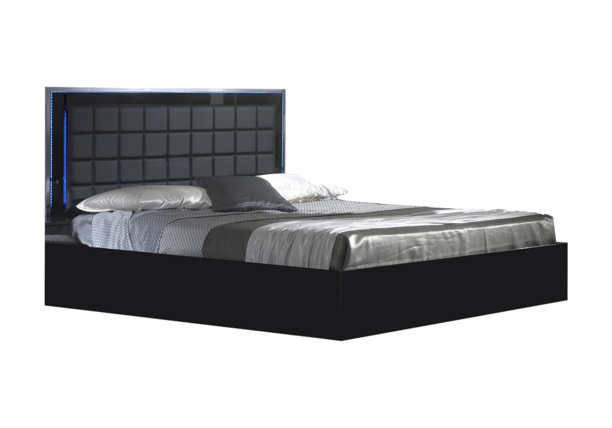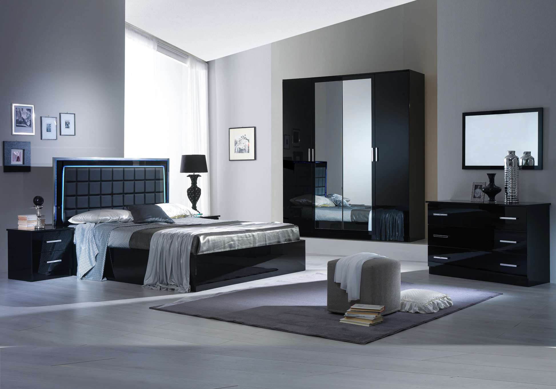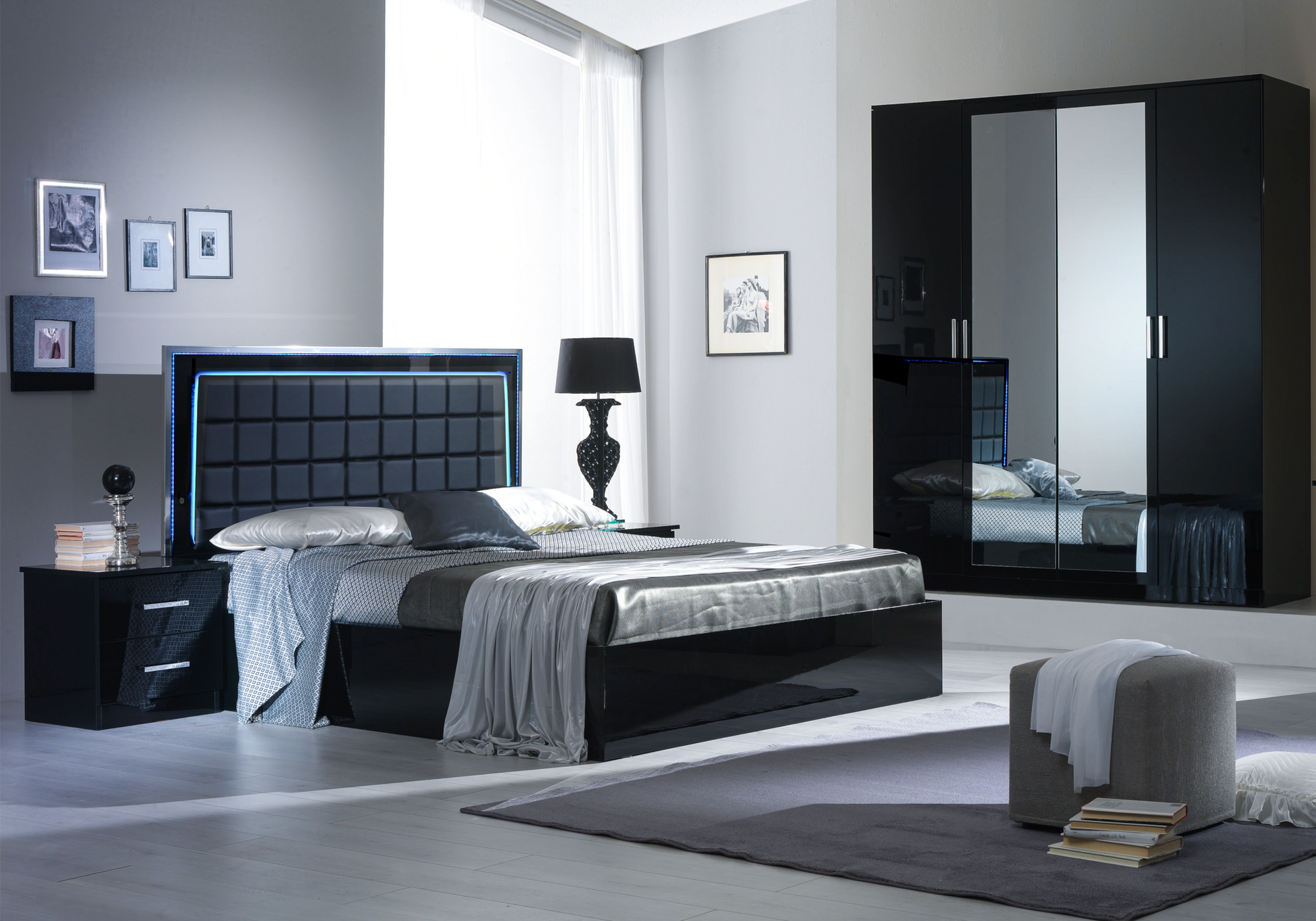 Chambre complète noire laquée capitonnée LED - LUCIA
