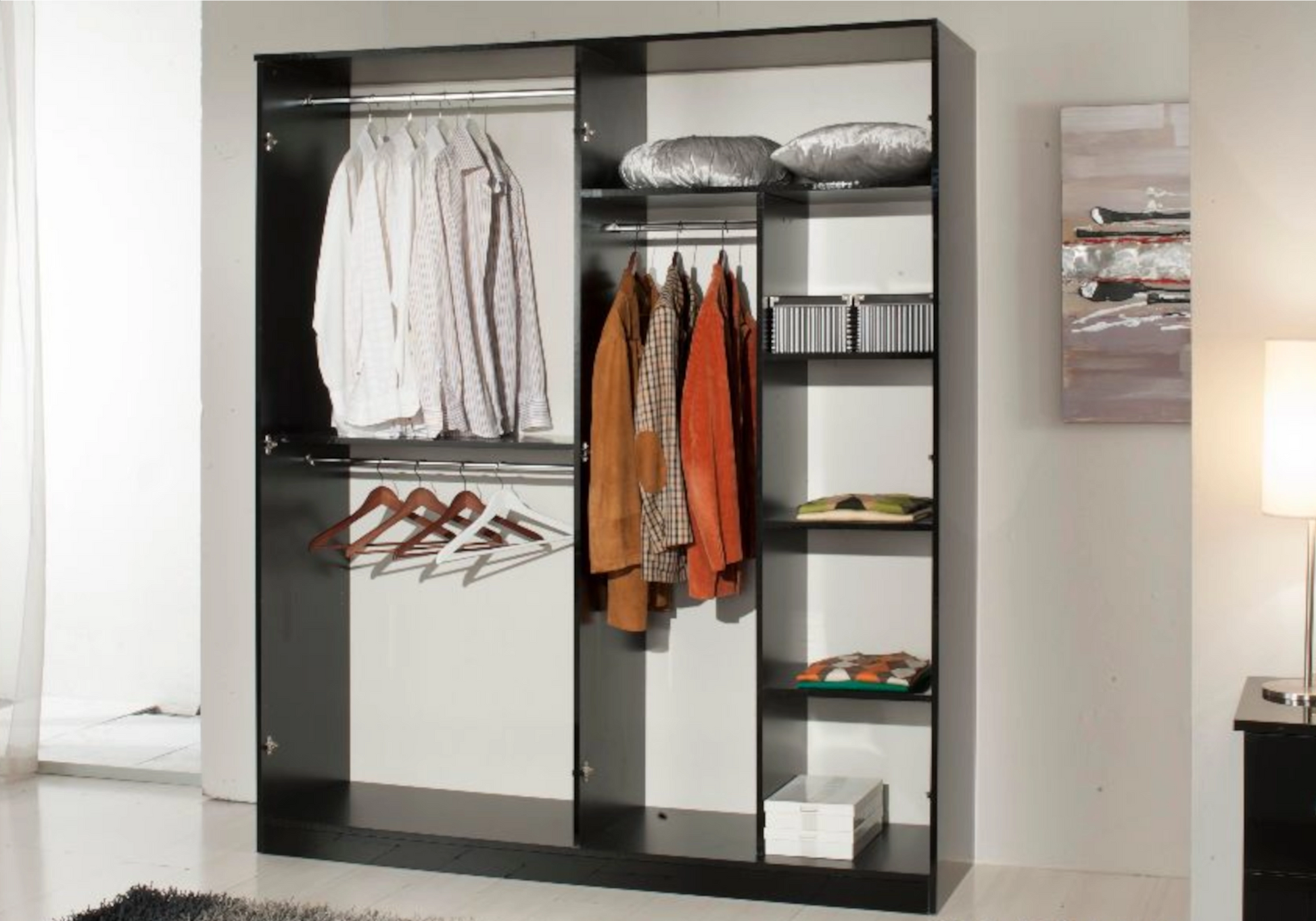 - 4 portes : 5 étagères, 3 tubes penderie.