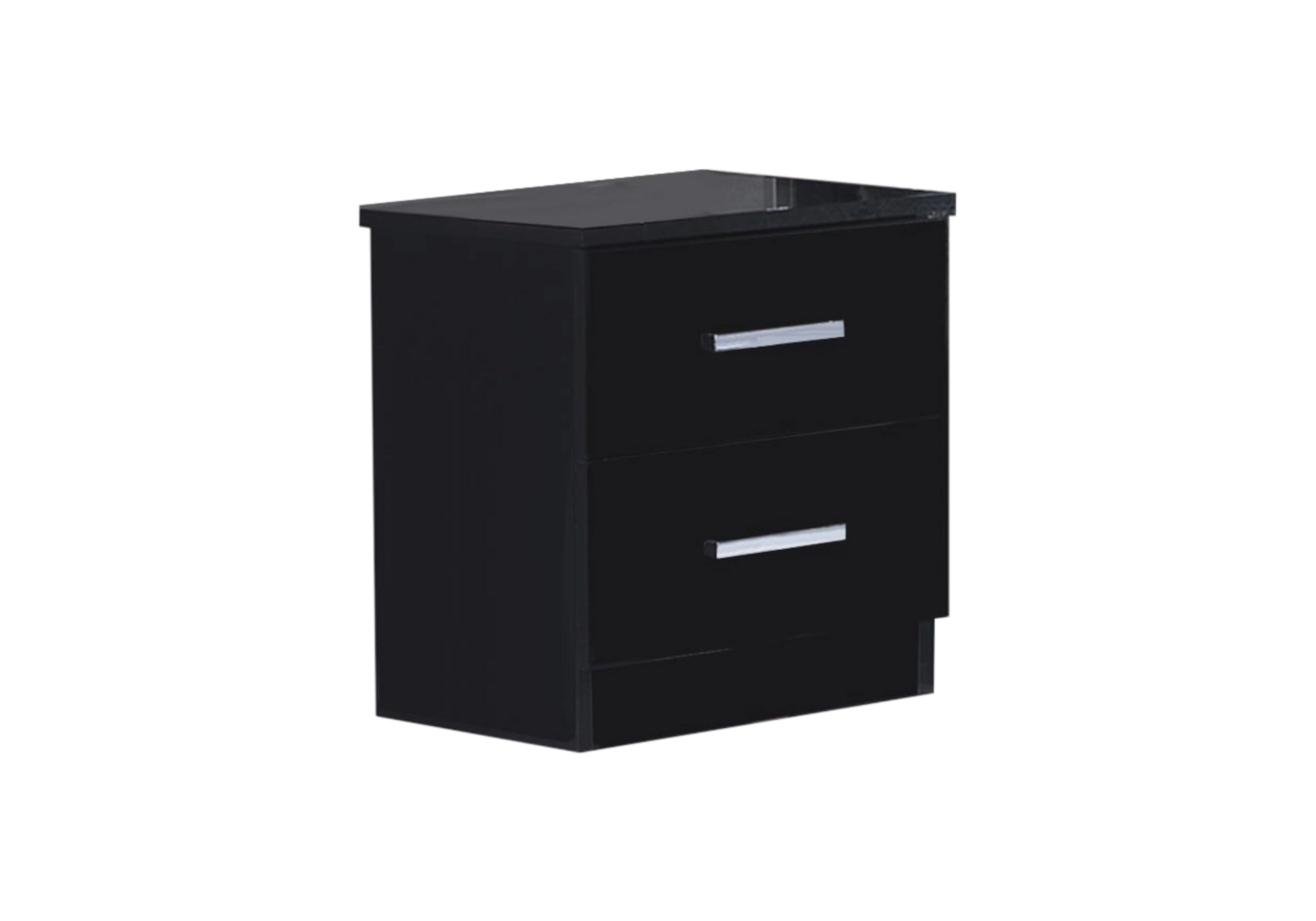 ✔ 2 chevets assortis à 2 tiroirs chacun, finition laquée brillante
