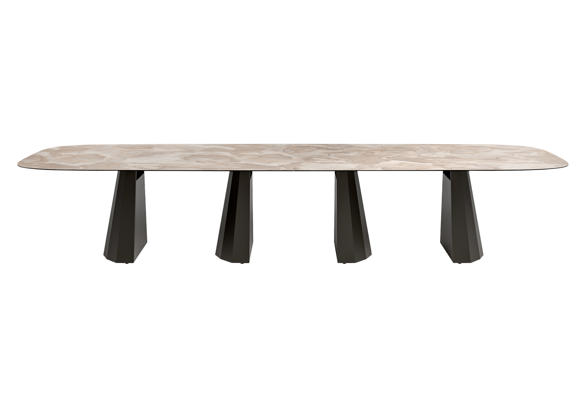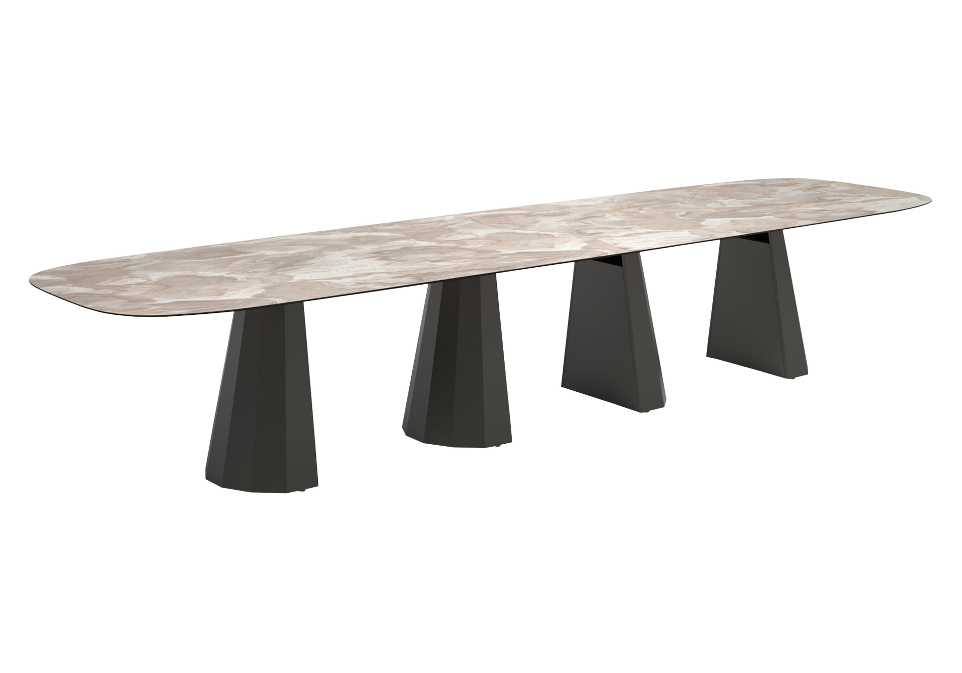 Pensée pour accueillir 12 à 14 convives, elle offre un confort d’assise généreux et une circulation fluide. Son design italien équilibre puissance visuelle et élégance contemporaine.
