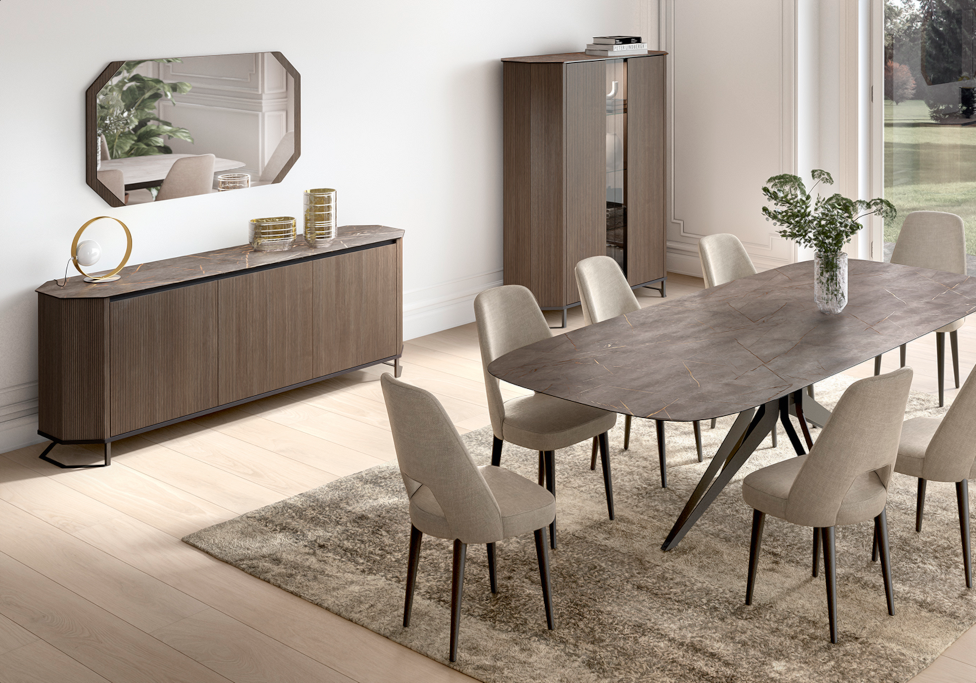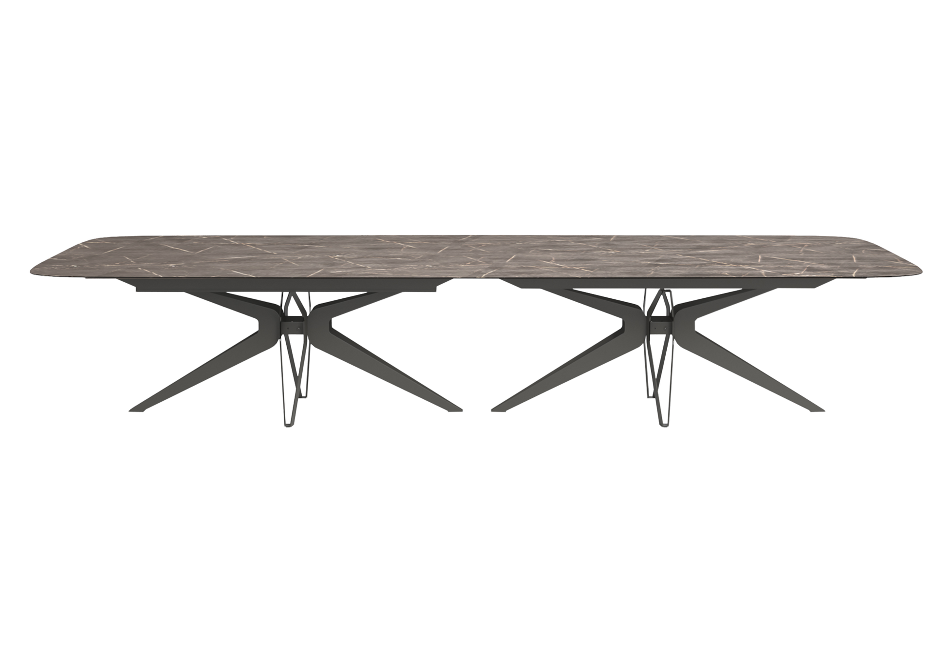 La grande table réception Hexagon 400 x 120 cm impose une présence spectaculaire dans la salle à manger. Son plateau effet marbre doré sublime l’espace et crée une ambiance contemporaine prestigieuse.