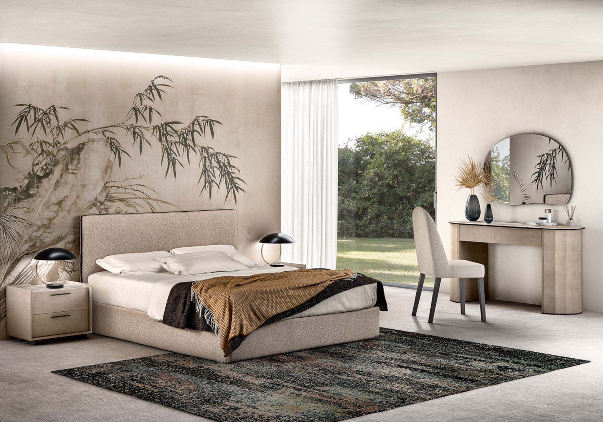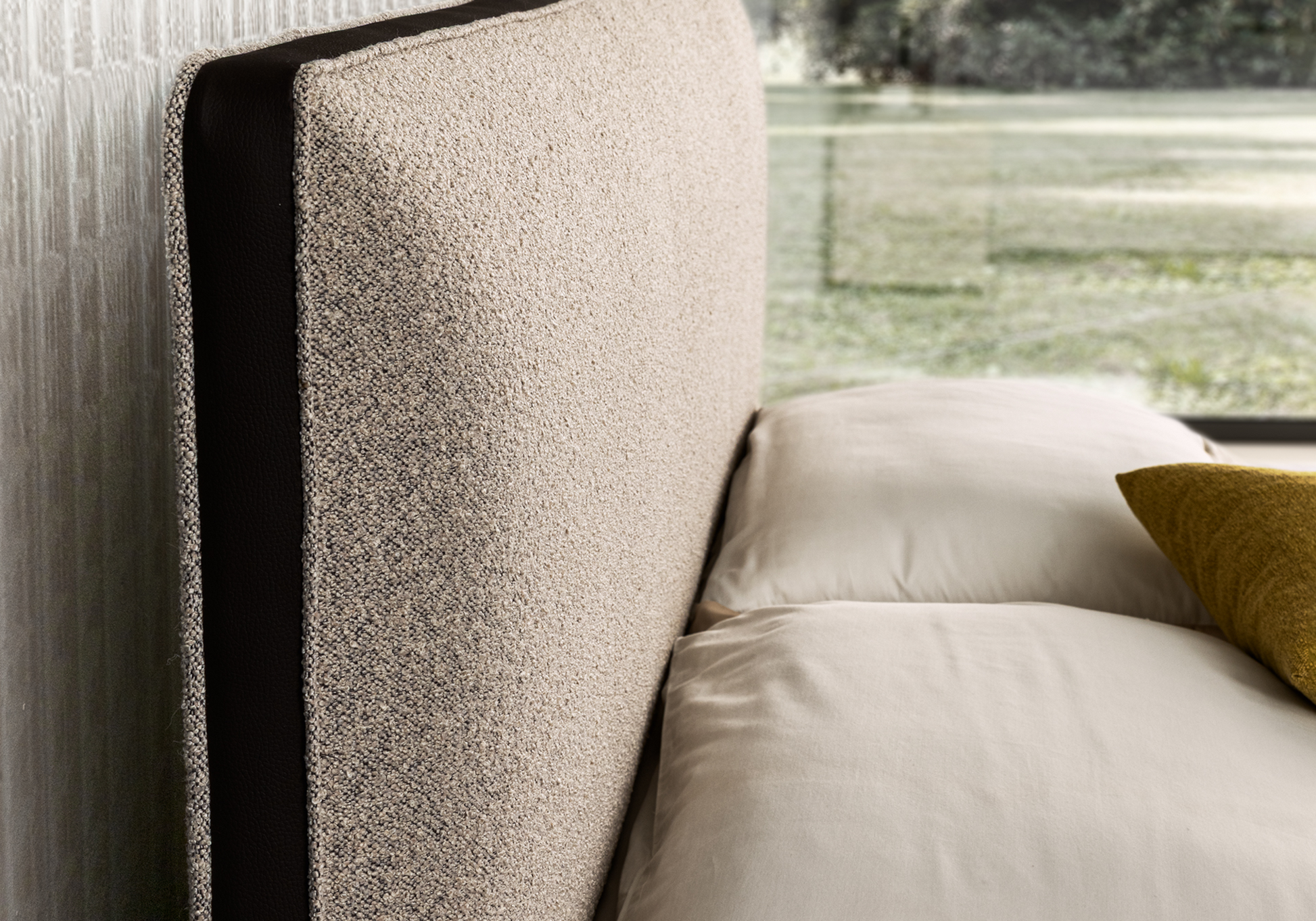 – Tête de lit rembourrée, rendu enveloppant