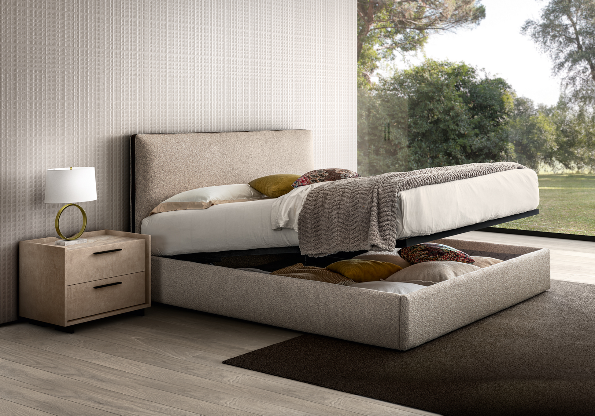 Lit coffre en tissu bouclé design italien – Dune