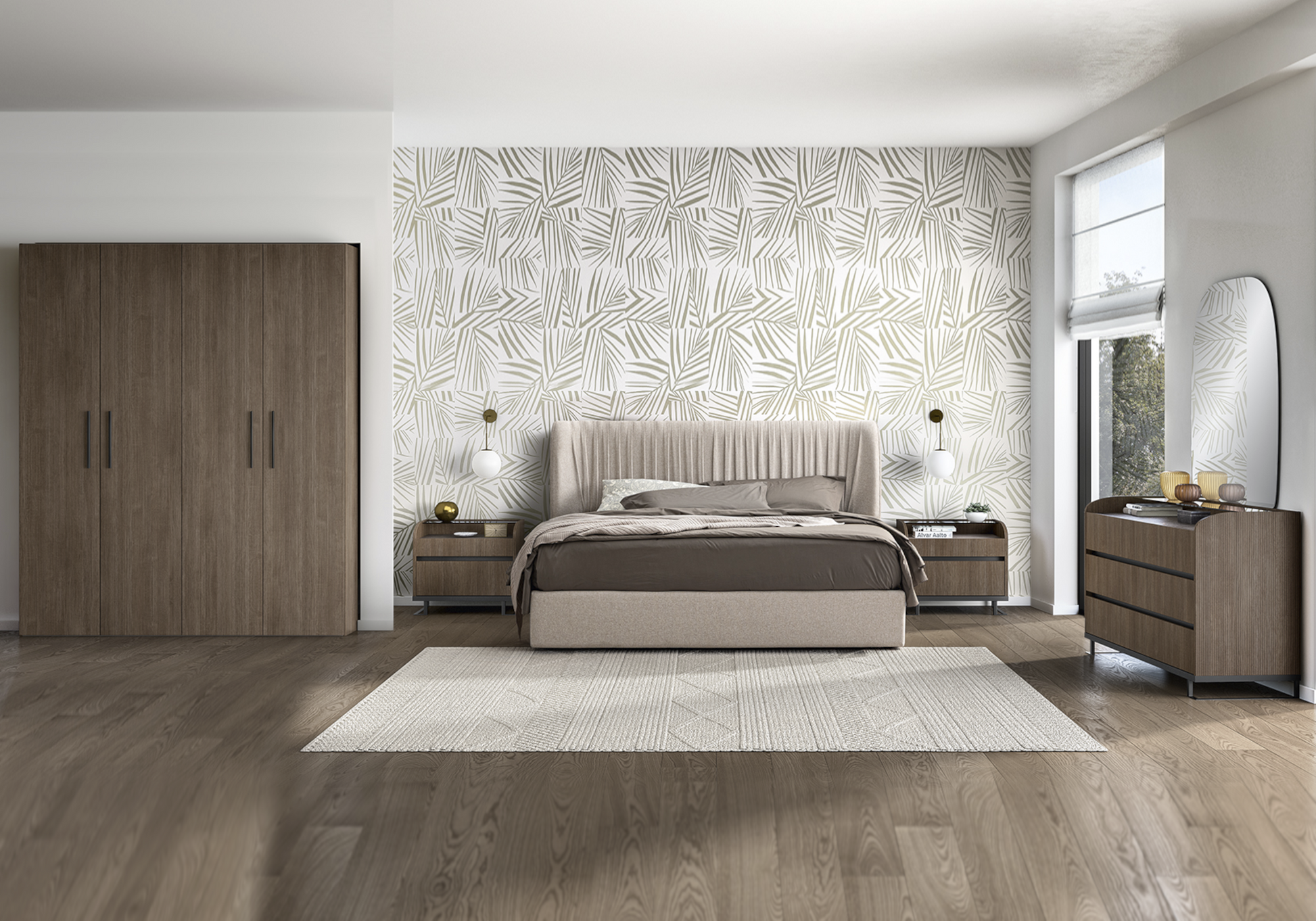 Le lit tissu beige moderne Hexagon transforme la chambre en espace apaisant et structuré. Sa tête de lit verticale habillée de tissu crée une présence douce et architecturée, idéale pour une ambiance contemporaine haut de gamme.