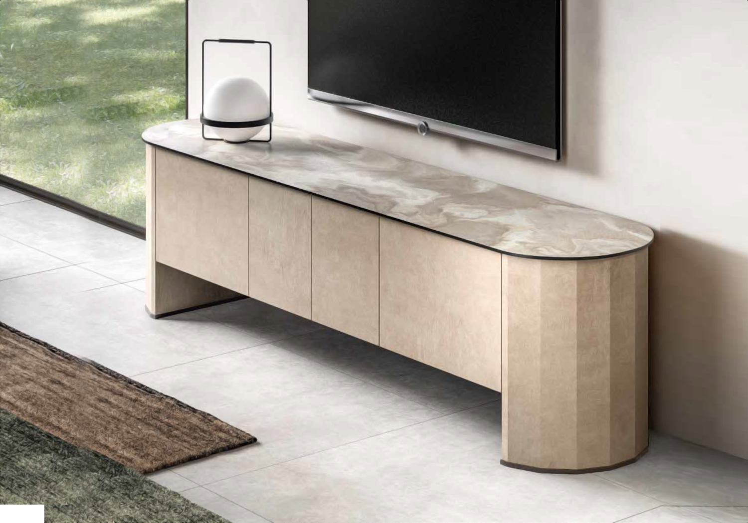 Le meuble TV Dune affirme une présence élégante et structurée. Son design italien associe volumes pleins, lignes douces et finition effet pierre pour un salon moderne et équilibré.