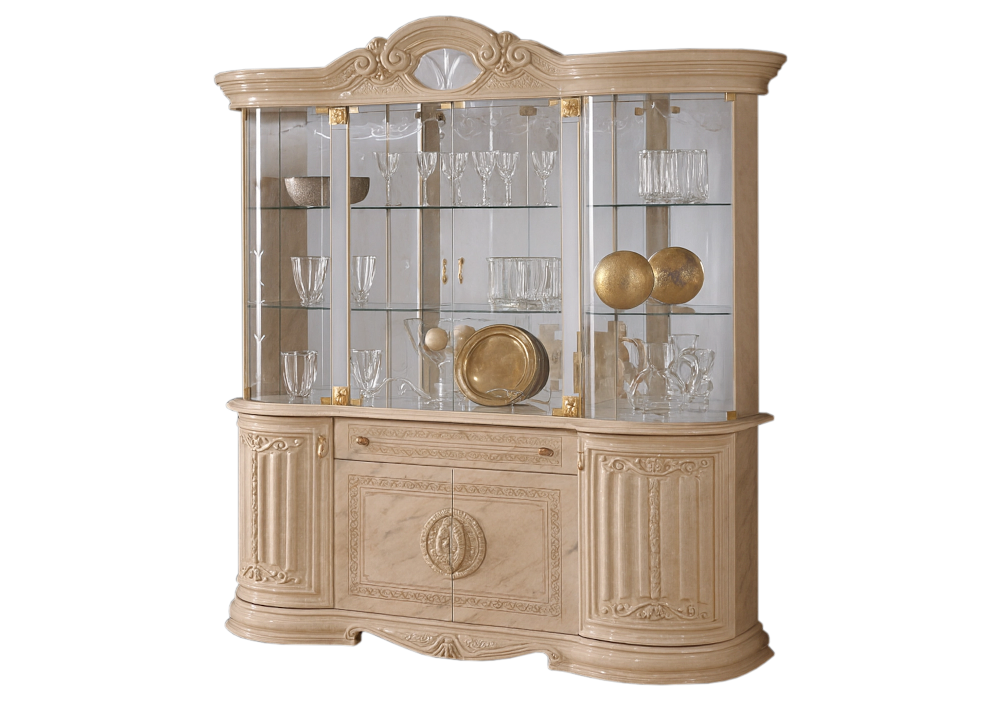 La salle à manger baroque beige marbré doré NOBILE séduit par son équilibre entre tradition décorative et modernité. Inspirée du mobilier italien de prestige, elle associe des lignes galbées à des volumes généreux. Les corniches sculptées, les plateaux biseautés et les décors dorés créent une signature visuelle forte, immédiatement reconnaissable.