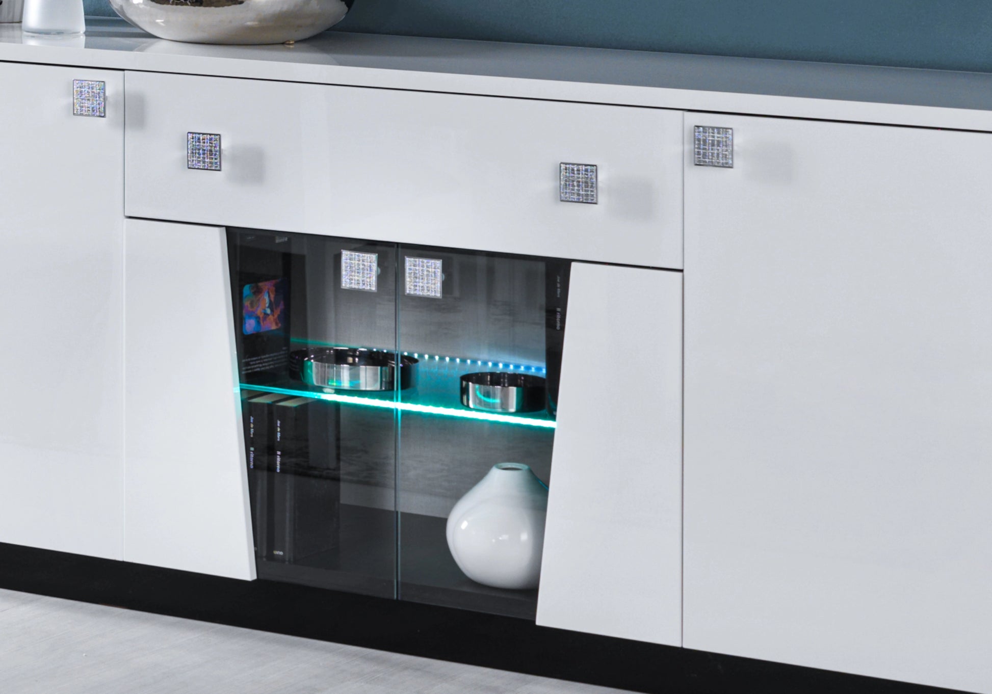 - Buffet 3 portes – espaces de rangement spacieux, LED intégrées