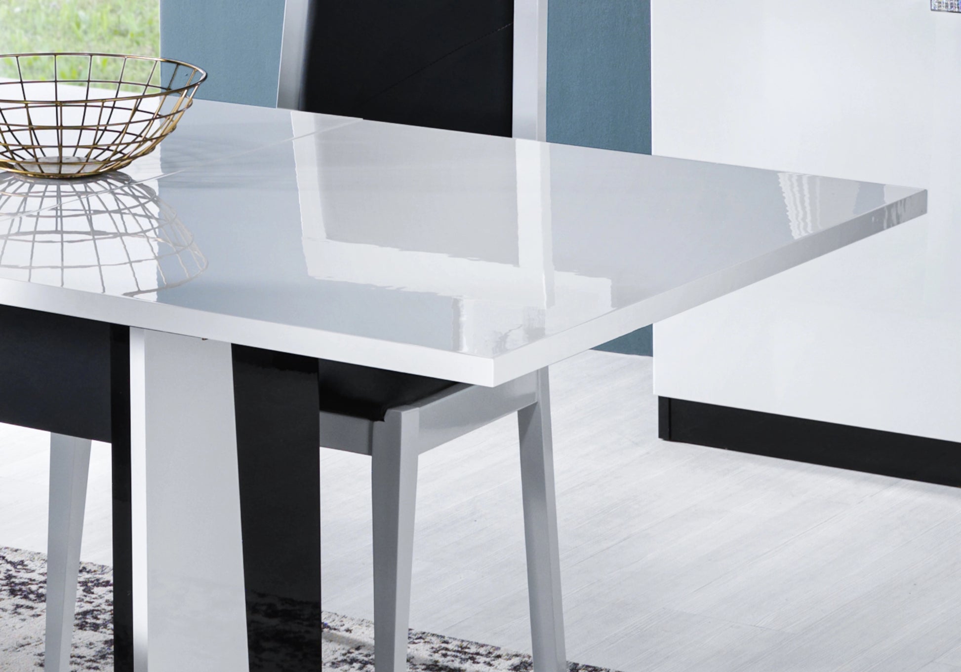 - Table à manger ELISA – plateau rectangulaire laqué blanc/noir