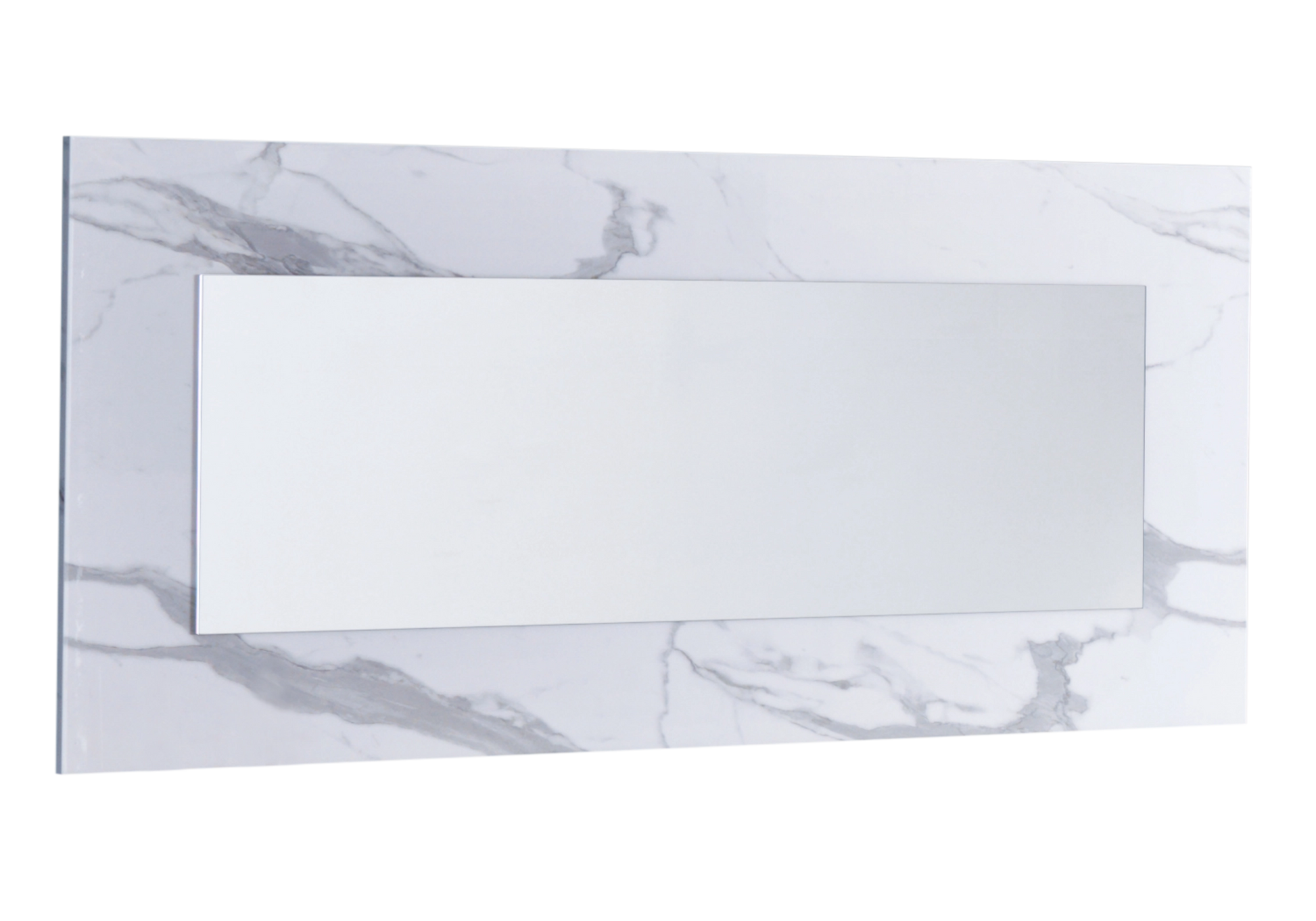 Son plateau de 25 mm d’épaisseur en mélamine écologique offre une stabilité optimale, tandis que sa finition brillante effet marbre blanc s’harmonise parfaitement avec le buffet et la vitrine.