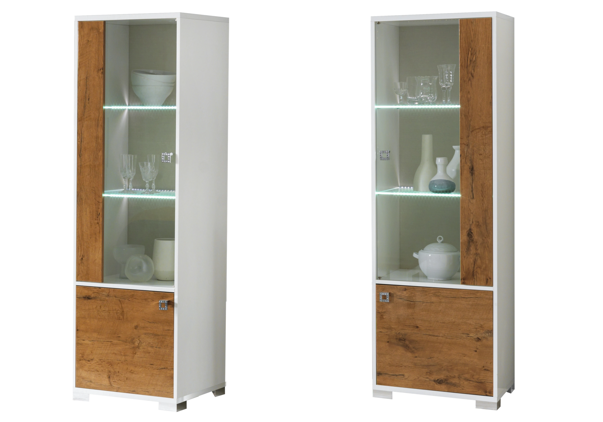 Les vitrines SARAH se déclinent en version 1 ou 2 portes. Elles associent verre trempé et éclairage LED à intensité réglable pour exposer votre vaisselle ou vos objets déco.
