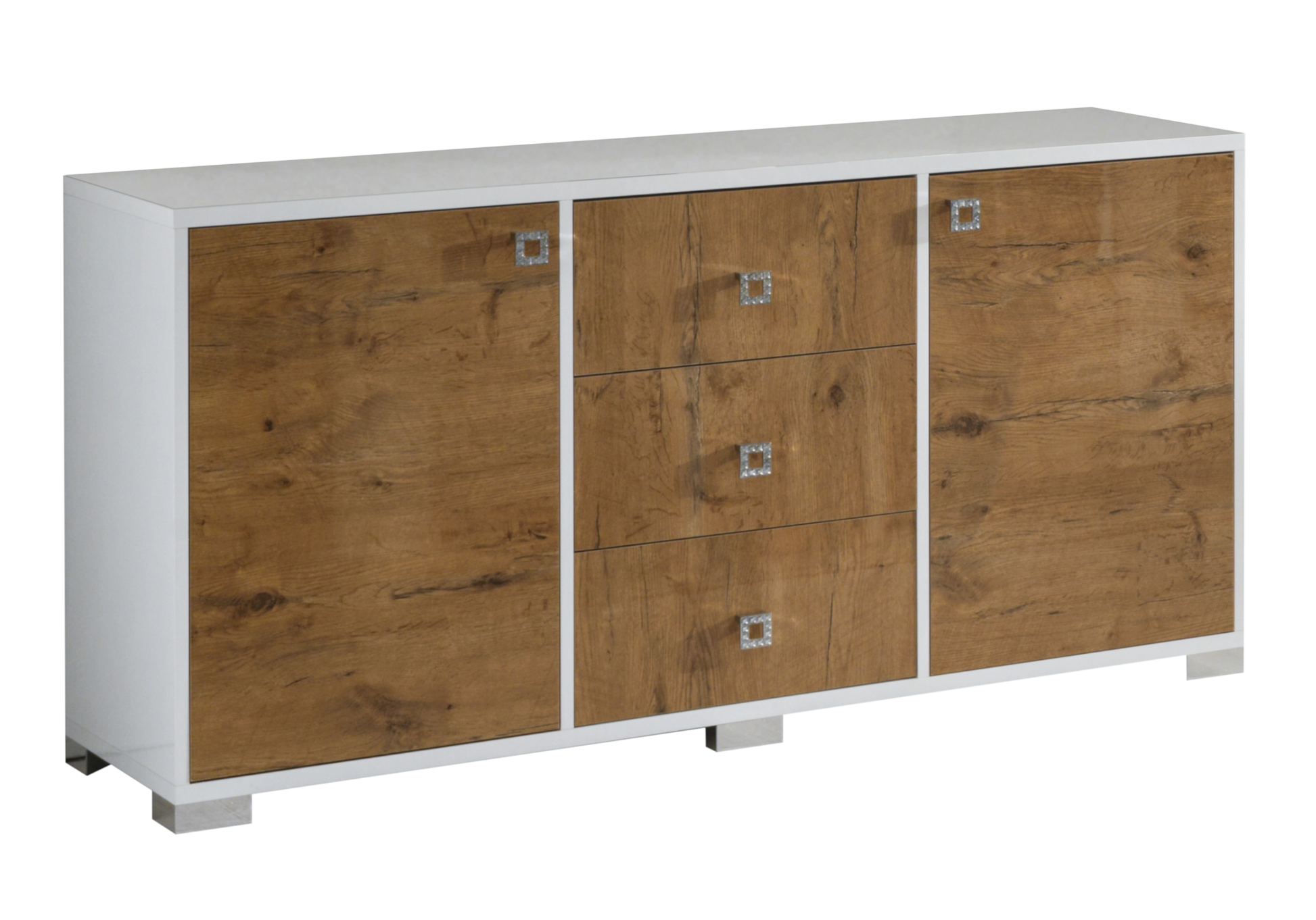 Alliant blanc laqué brillant et bois naturel verni, la collection SARAH apporte un souffle lumineux et raffiné à votre intérieur. Ses lignes sobres, ses finitions haut de gamme et ses poignées cristal signent un mobilier élégant et durable, conçu pour sublimer les repas et les moments partagés.