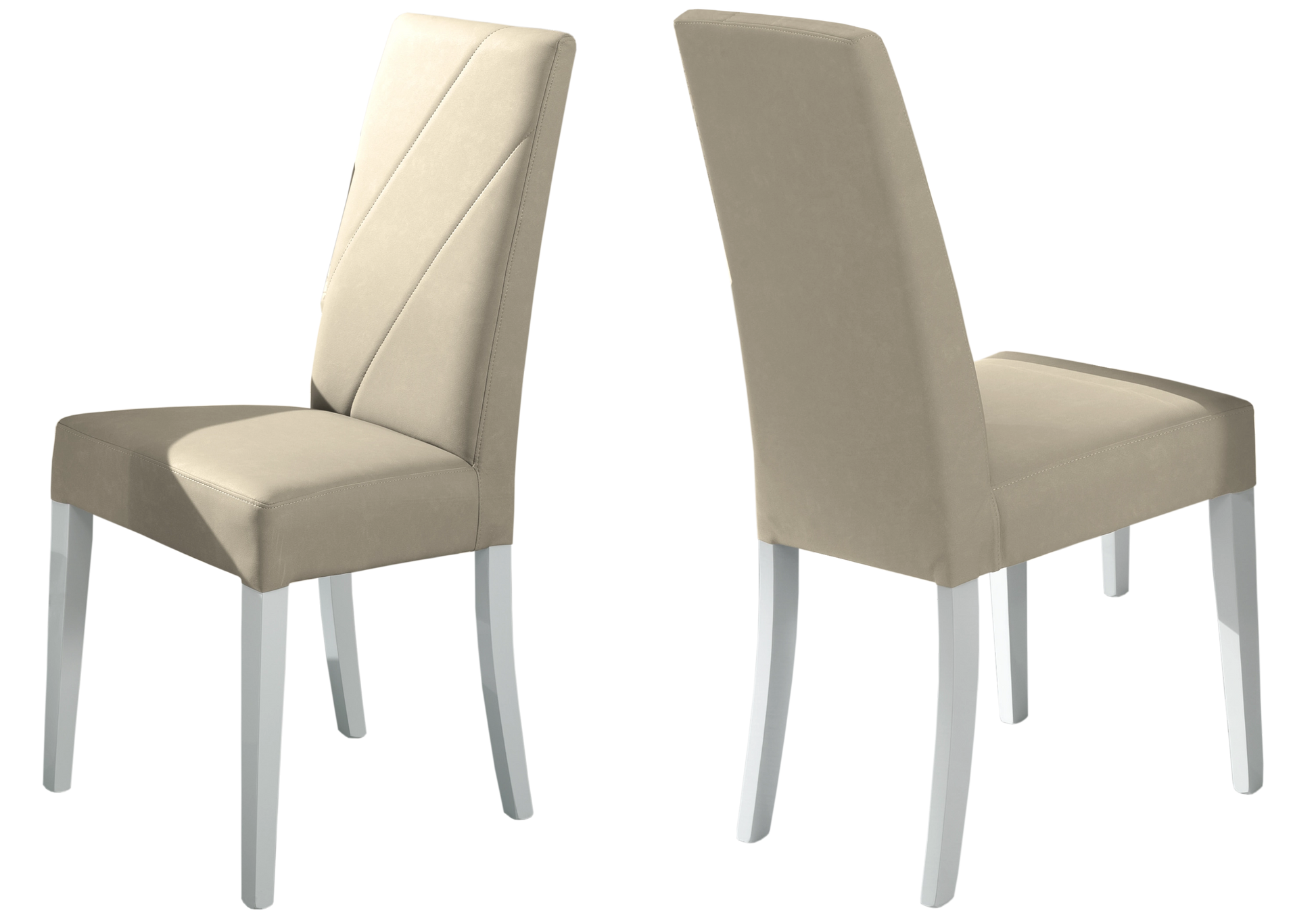 - Quatre chaises STELLA, au revêtement simili cuir gris, combinant confort, élégance et entretien facile.
