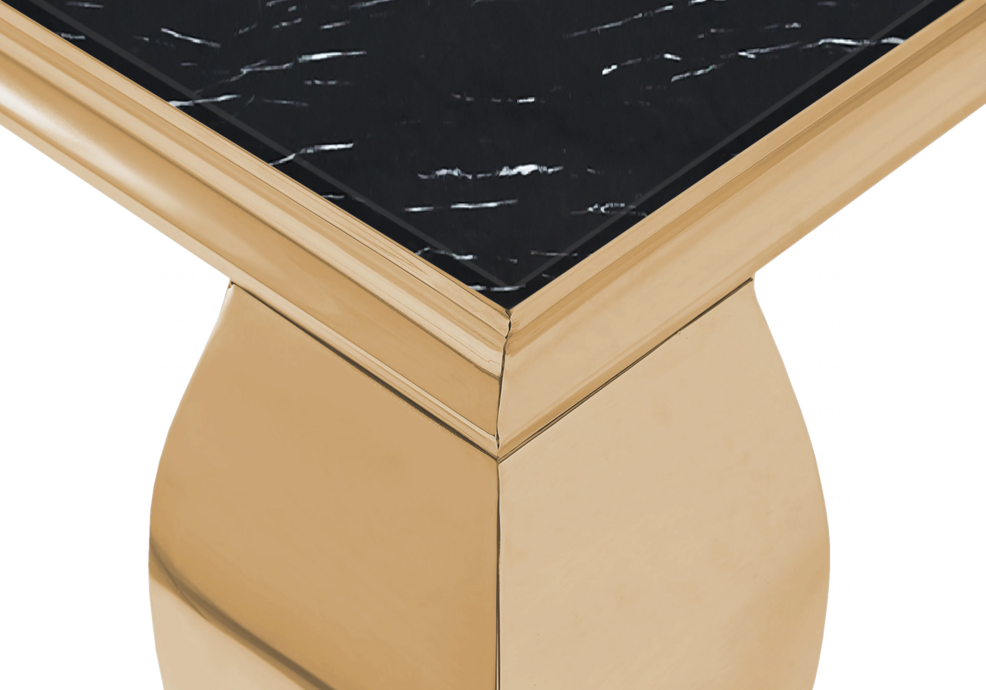 Les pieds dorés en acier inoxydable apportent une brillance élégante sans compromettre la stabilité. Ce contraste subtil entre la teinte noire profonde du plateau et l’éclat de l’or donne à cette table une allure résolument luxueuse et contemporaine.