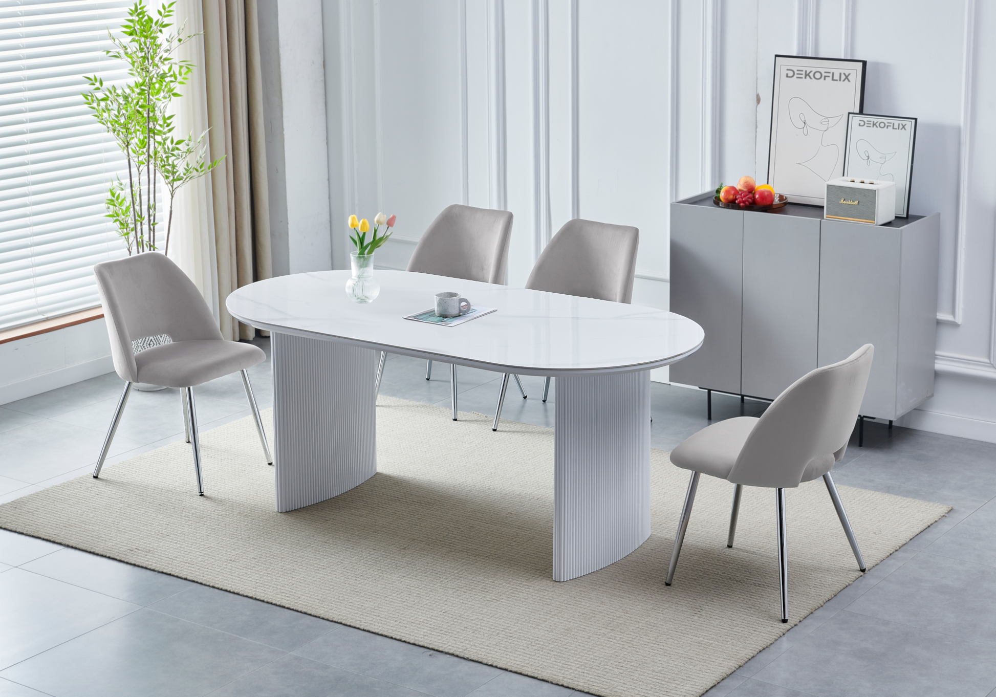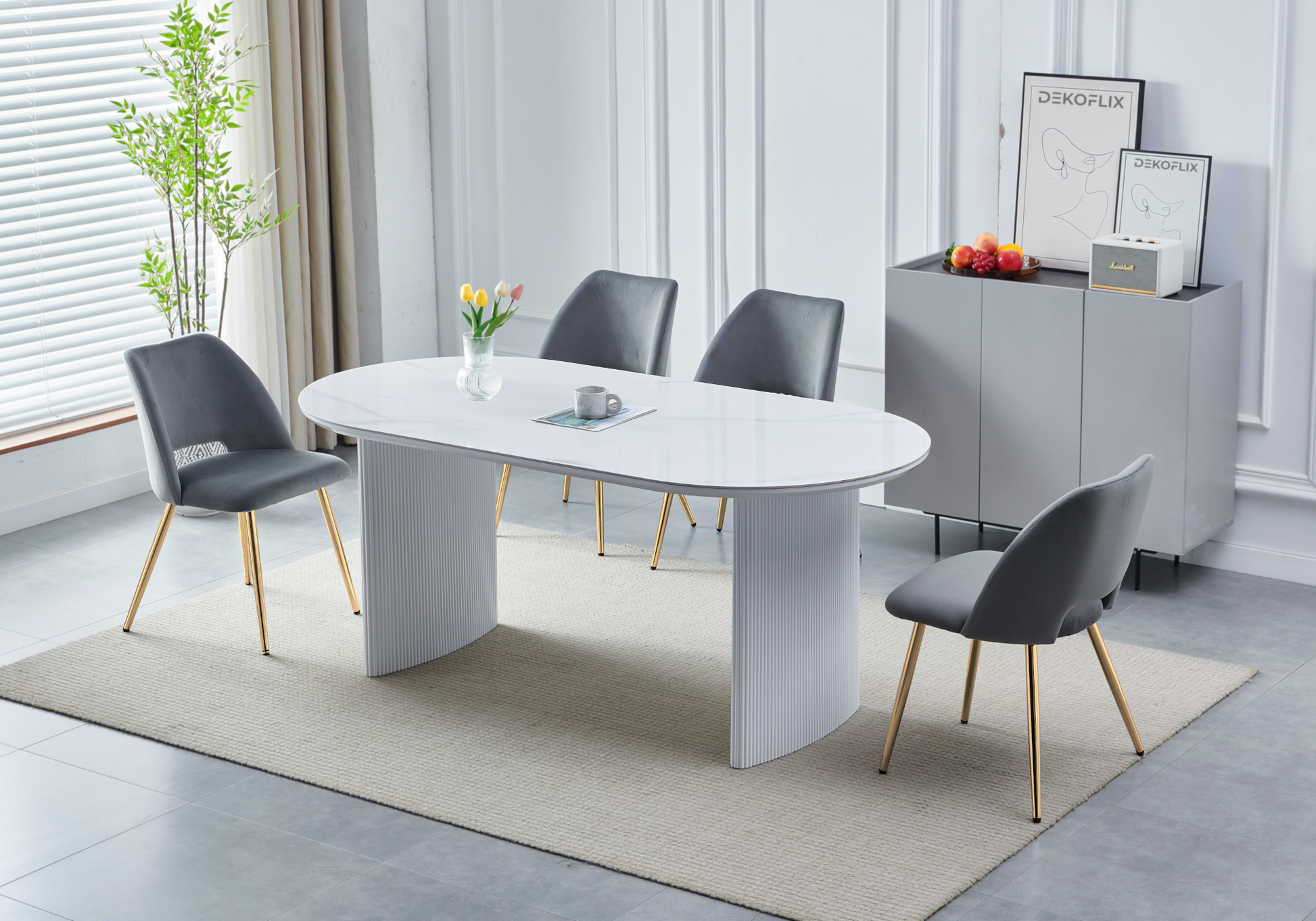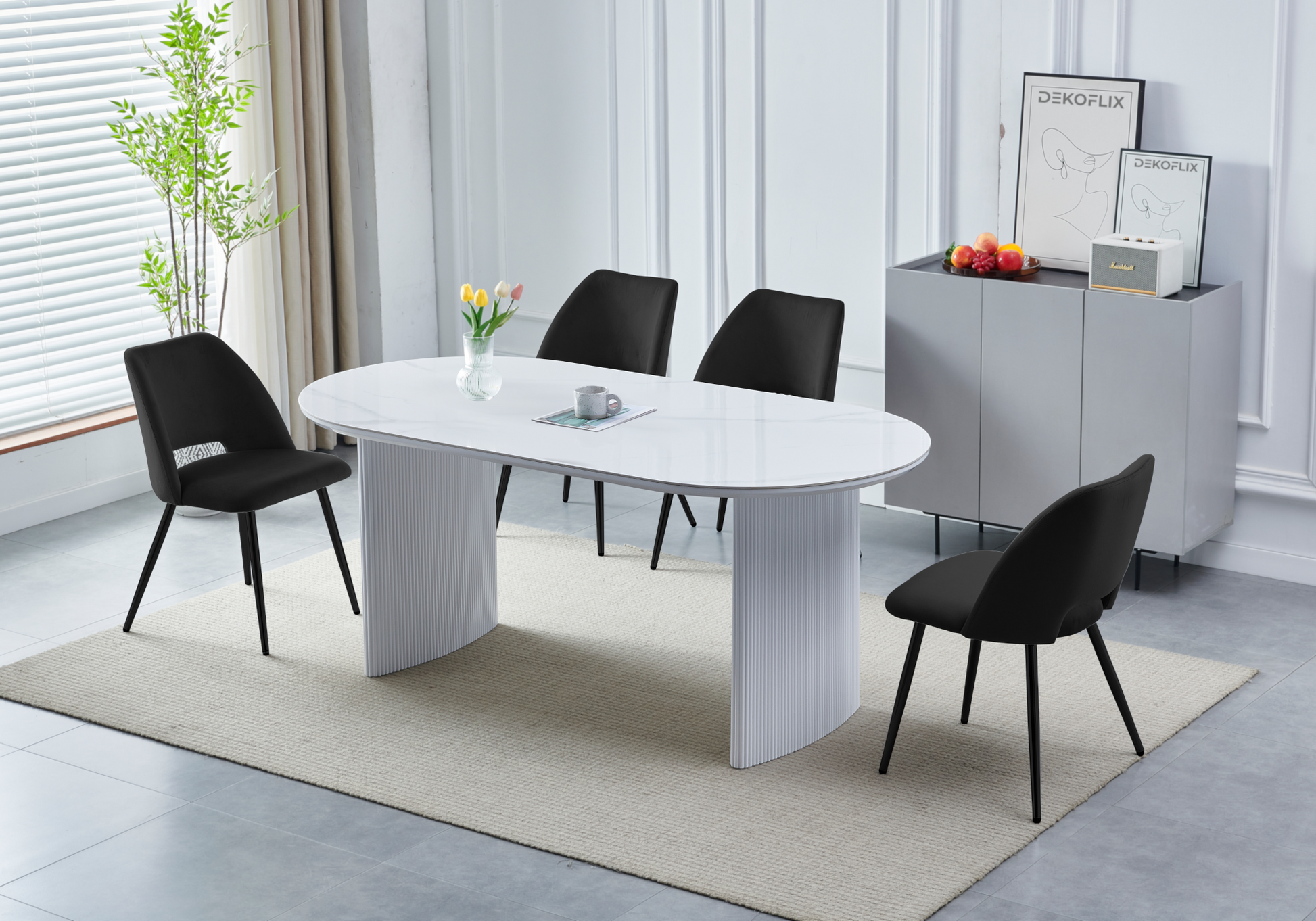 La table à manger ovale Kara blanc redéfinit le luxe contemporain avec sa silhouette architecturale iconique. Ses lignes fluides et son éclat minéral créent un impact visuel spectaculaire unique pour votre intérieur.