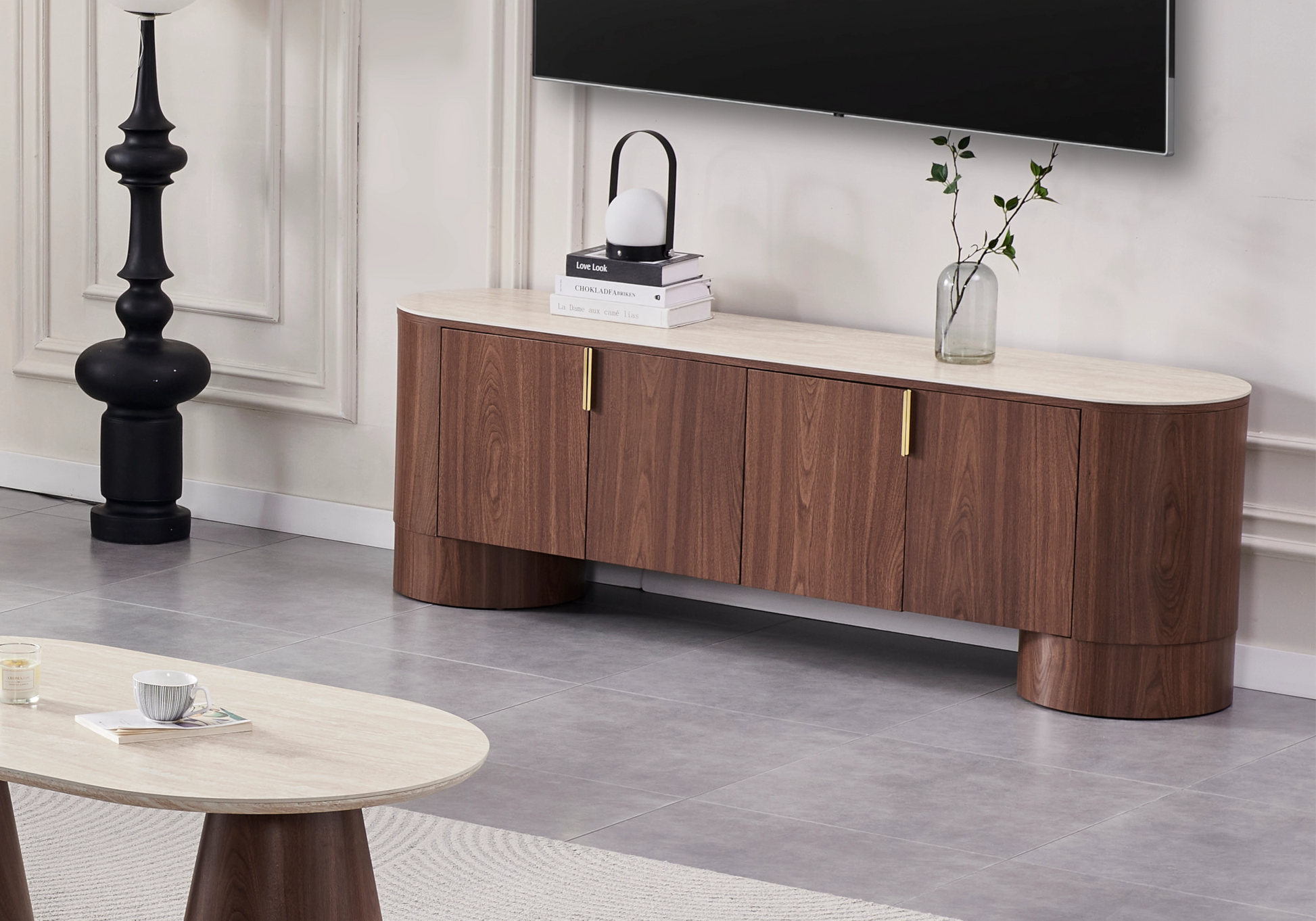 La MONZA peut être associée aux autres meubles de la même gamme : buffet, console, table à manger ou variantes travertin. Chaque pièce reprend les lignes douces et les finitions élégantes permettant de créer un intérieur cohérent, moderne et chaleureux.