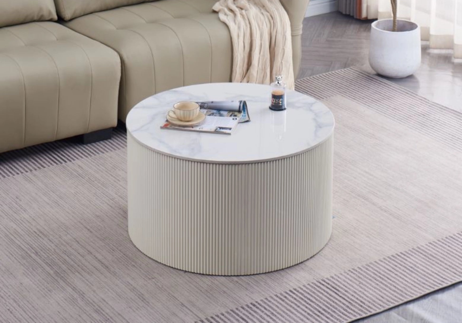 Table basse ronde marbre blanc cannelée beige - ARIEL