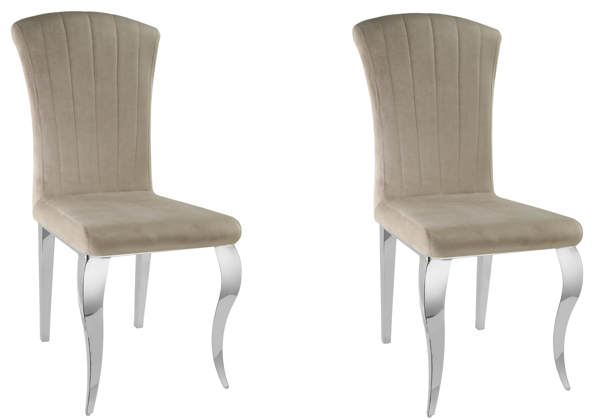 ✓ Chaises NOVA : vendues par lot de 6, assise en velours taupe, pieds en acier chromé