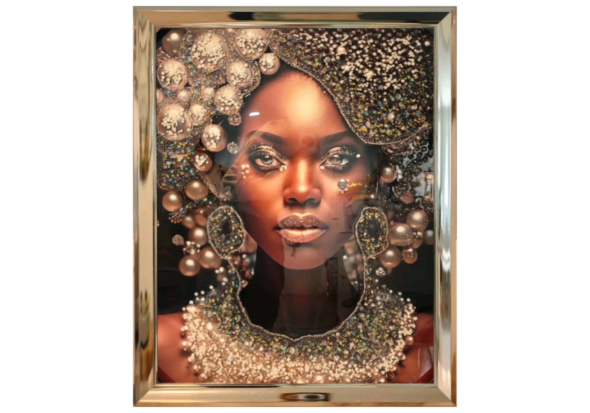 Tableau femme africaine perles cristaux dorés – AMARA